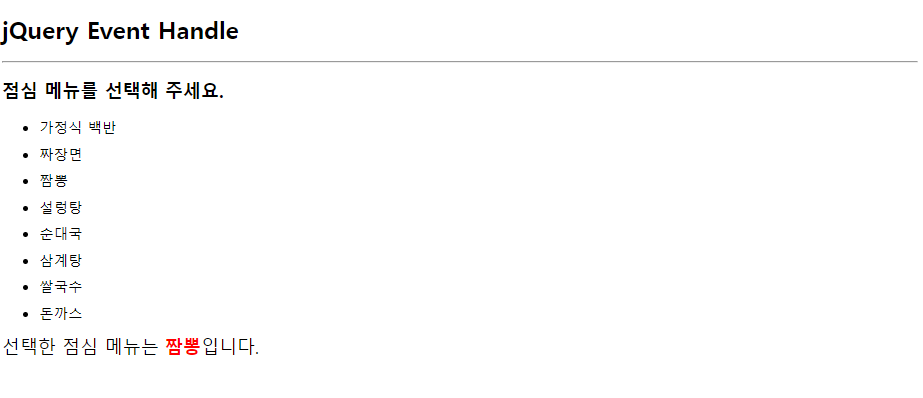 <div>선택한 점심 메뉴는 <span id="menu">???</span>입니다.</div>