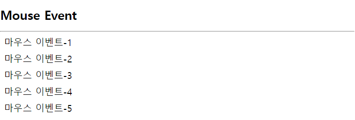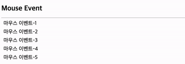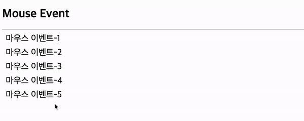hover : 태그에 마우스 커서가 진입하거나 벗어나는 순간 발생되는 이벤트