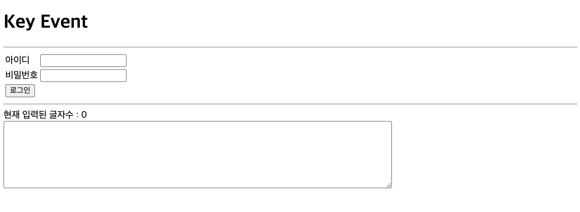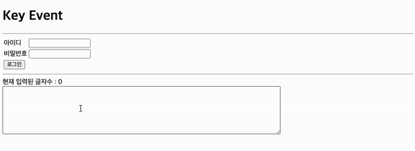 event.keyCode : 이벤트가 발생된 키보드의 키를 구분하기 위한 값이 저장된 프로퍼티