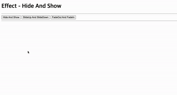 show메소드와 hide 메소드는 매개변수에 지속시간(ms)을 전달하면 설정된 시간동안 변화되는 효과를 제공한다.