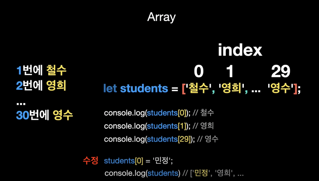 배열을 쓰는 가장 큰 이유 중 하나는 '반복'을 위해서이다.