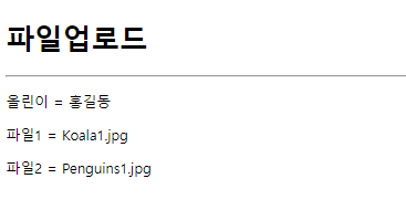 → MultipartRequest.getParamater(String name) 또는 getParamaterValues(String name) 메소드 호출
