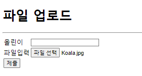 → 사용자로부터 입력된 파일을 웹프로그램에게 전달하기 위해 form 태그의 method 속성값을 반드시 [post]로 설정하고 enctype 속성값을 [multipart/form-data]로 설정한다.