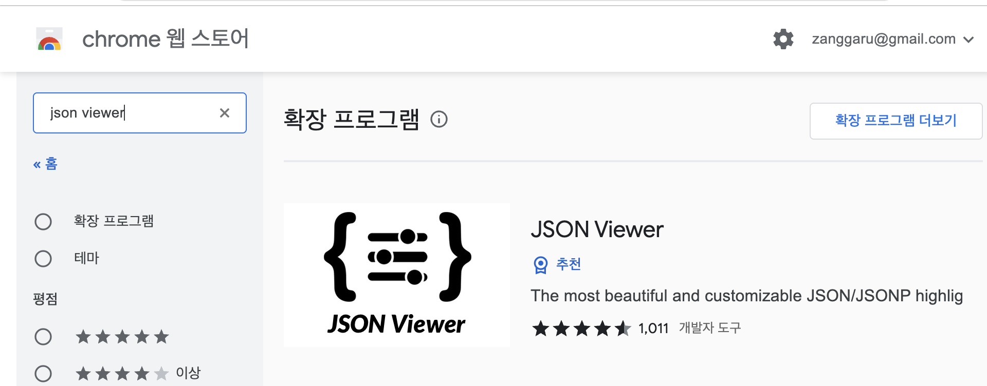 크룸(Chrome) 웹스토어에서 JSON Viewer 프로그램을 브라우저에 설치하여 실행하면 JSON 형식으로 볼 수 있다.