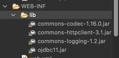 → https://apache.org 사이트에서 필요한 라이브러리 파일을 다운로드 받아 프로젝트 빌드 처리 (commons-httpclient-3.1.jar, commons-codec-1.16.jar, commons-logging-1.2.jar)