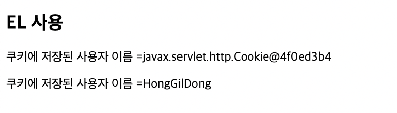 <p>쿠키에 저장된 사용자 이름 =${cookie.userName} </p>
