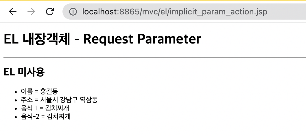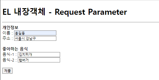 <h1>EL 내장객체 - Request Parameter</h1>