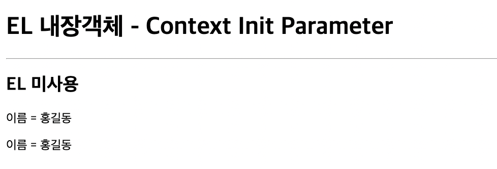 <p>이름 = ${initParam.name }</p>