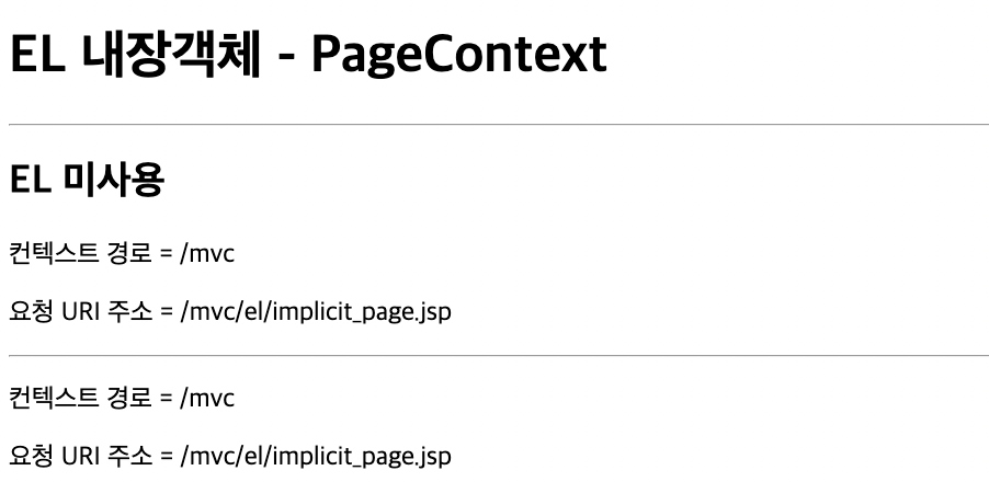 <p>컨텍스트 경로 = <%=((HttpServletRequest)pageContext.getRequest()).getContextPath() %></p>