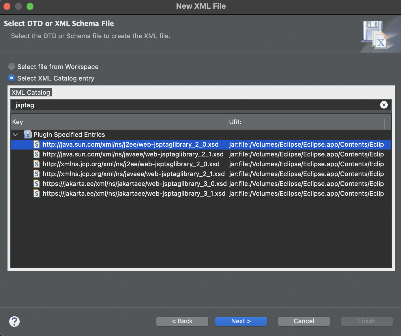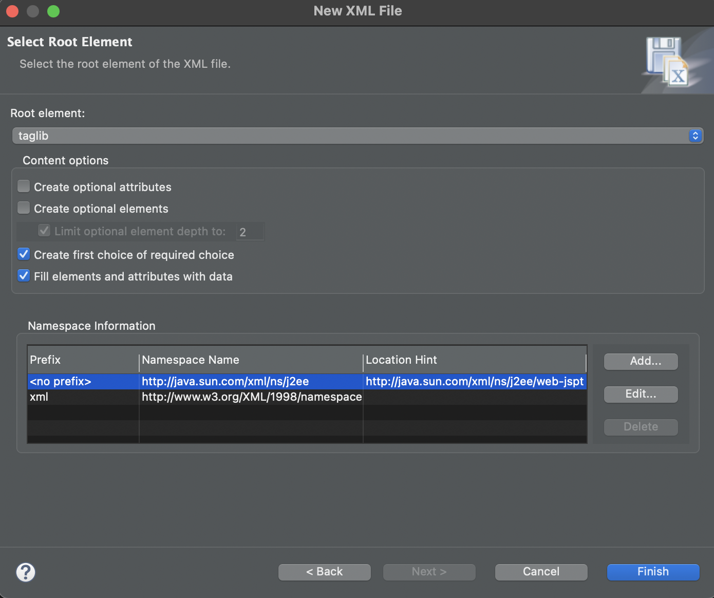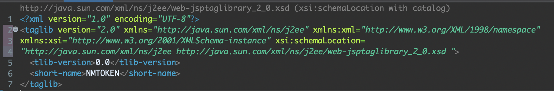 XML 스키마 파일(web-jsptaglibrary_2_0.xsd)에서 제공하는 엘리먼트만 사용해야 한다.