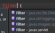 필터를 사용하기 위해서는 필터 기능을 제공해주는 필터 클래스를 선언해주어야 한다.
