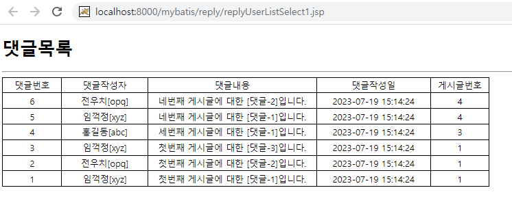 <select id="selectCommentNoReplyList" parameterType="int" resultType="MyReply">