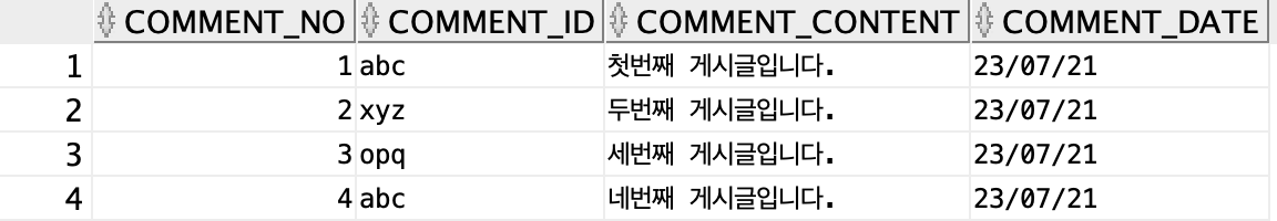 이번에는 MYCOMMENT 테이블과 MYREPLY 테이블을 조인할 것이다