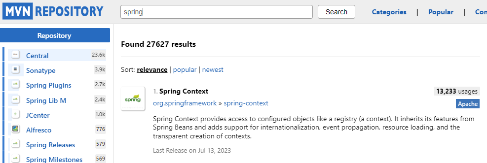 메이븐 저장소(Maven Repositroy)는 라이브러리 파일이 저장된 인터넷상의 저장소를 뜻한다.