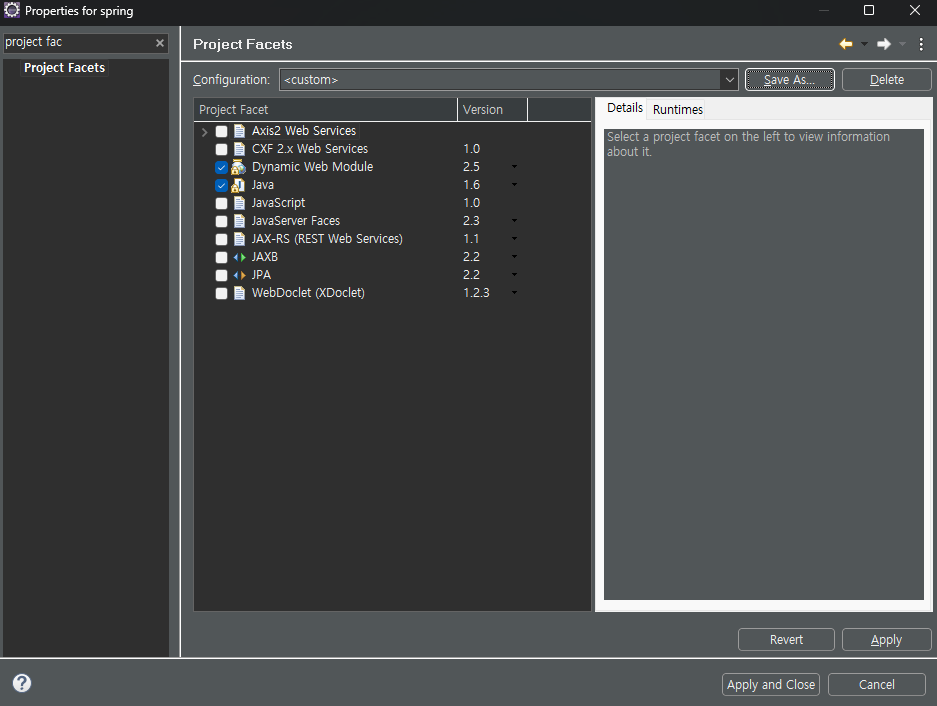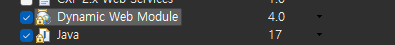프로젝트 우클릭 >> Properties >> Project Facets 검색