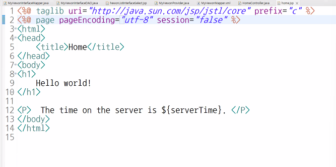home.jsp 파일에서 utf-8로 설정해주면 한글이 깨지지 않고 잘 출력된다