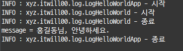 → 매개변수에는 로그 구현체로 기록될 로그 메세지를 전달한다.