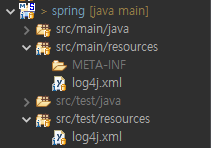 main에 있는 log4j.xml과 test에 있는 log4j.xml은 각각 다르다