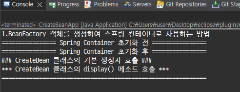 System.out.println("*** CreateBean 클래스의 display() 메소드 호출 ***");