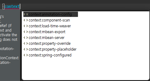 → context 네임스페이스의 spring-context.xsd 파일에 의해 제공되는 엘리먼트이다.