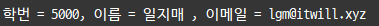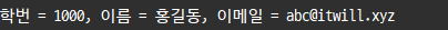 return "학번 = "+num+", 이름 = "+name+", 이메일 = "+email;