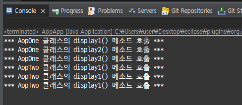 System.out.println("*** AopTwo 클래스의 display1() 메소드 호출 ***");