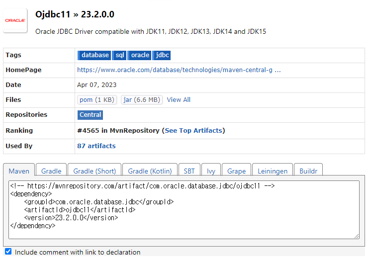 https://mvnrepository.com/artifact/com.oracle.database.jdbc/ojdbc11/23.2.0.0