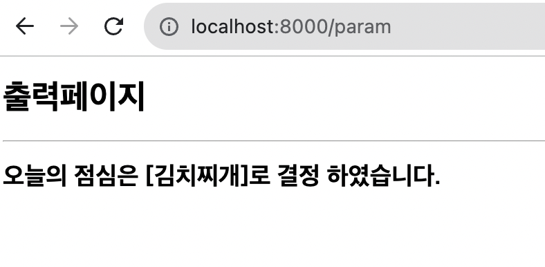 <h2>오늘의 점심은 [${food }]로 결정 하였습니다.</h2>
