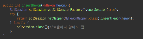 - DAO 클래스(Mybatis 이용) 선언