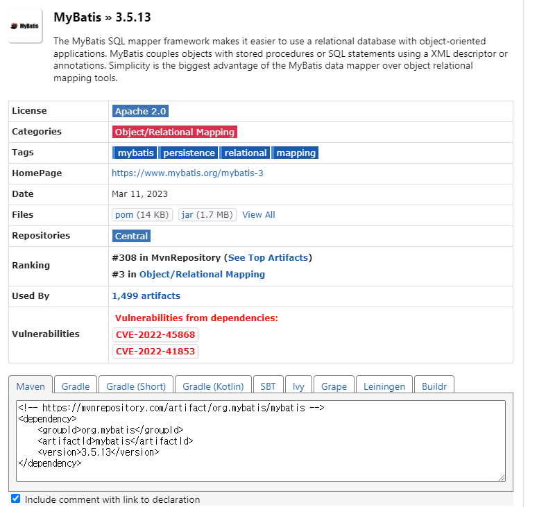 https://mvnrepository.com/artifact/org.mybatis/mybatis/3.5.13