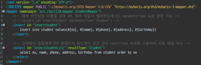 <!-- => XML 기반의 매퍼파일에서 Java 자료형 대신 사용될 별칭을 제공하기 위한 설정 -->