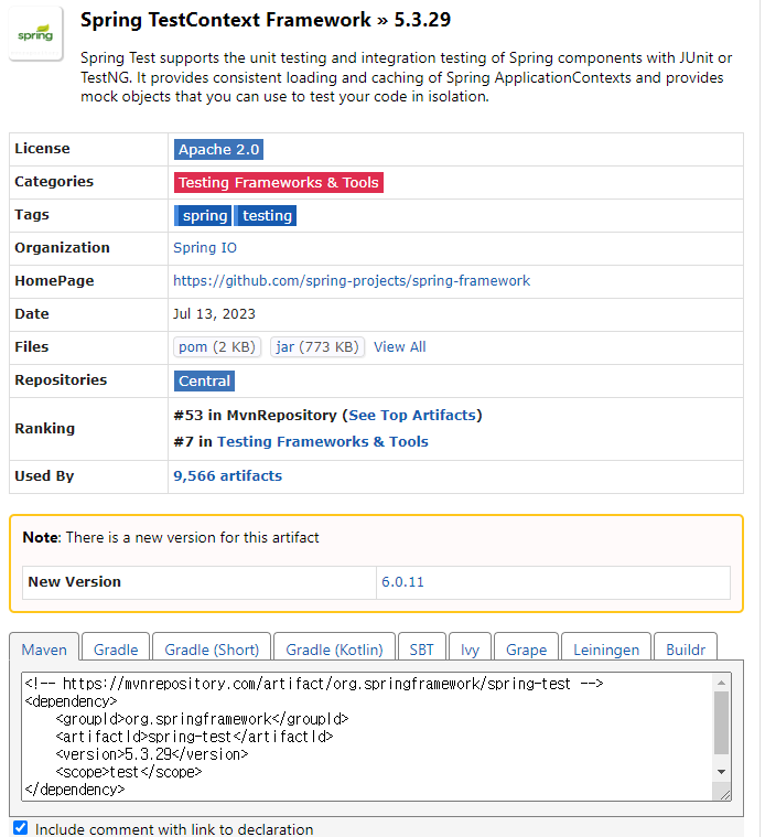 https://mvnrepository.com/artifact/org.springframework/spring-test/5.3.29