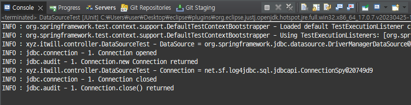 - [src/test/resources] 폴더의 [log4j.xml] 파일의 내용을 변경해야 한다.