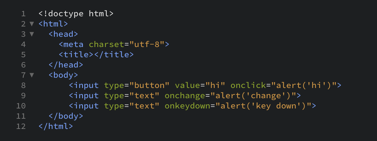ex. onclick, onchange 등의 속성(attribute)