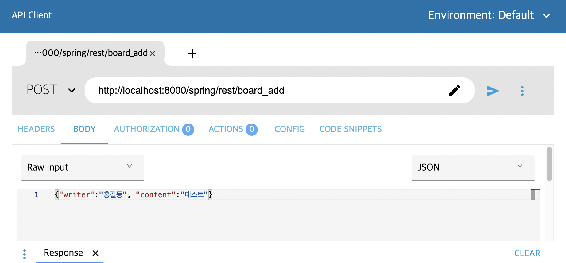 // => 사용자 입력값을 반환받아 RESTBOARD 테이블에 삽입 처리하는 Restful API를 비동기식을 요청하여