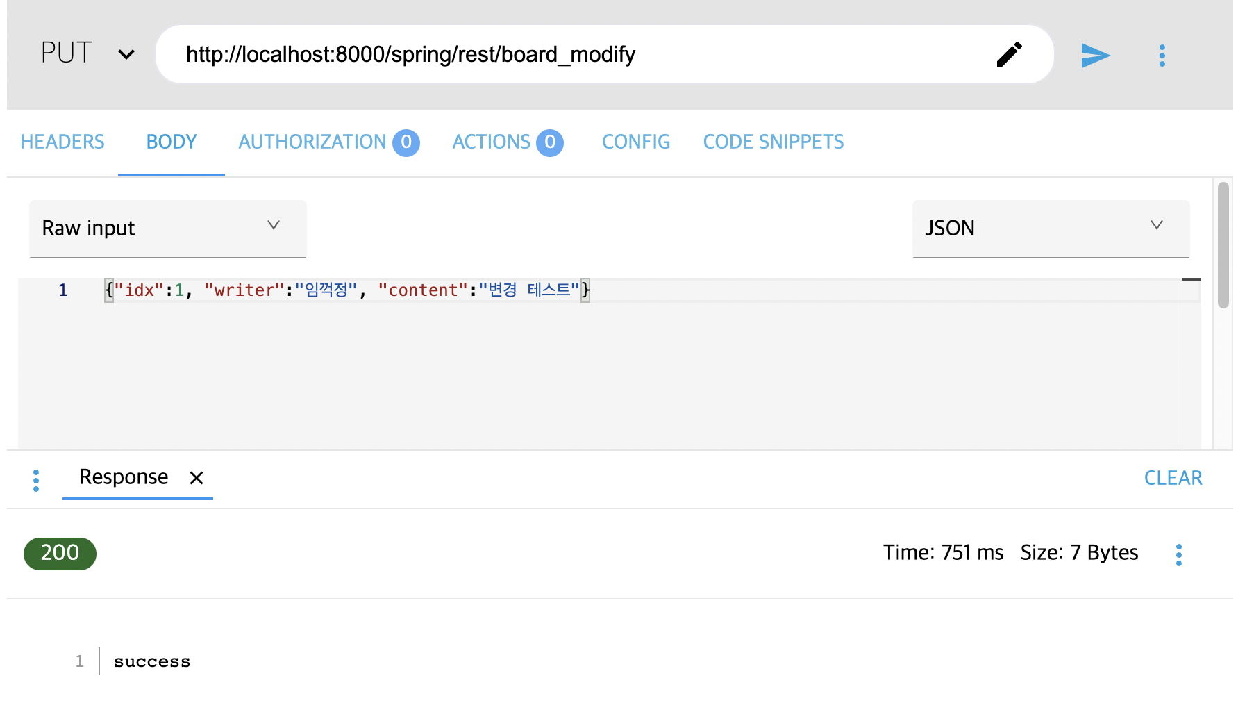 // => 리퀘스트 메소드 몸체부에 JSON 형식의 문자열로 값 전달