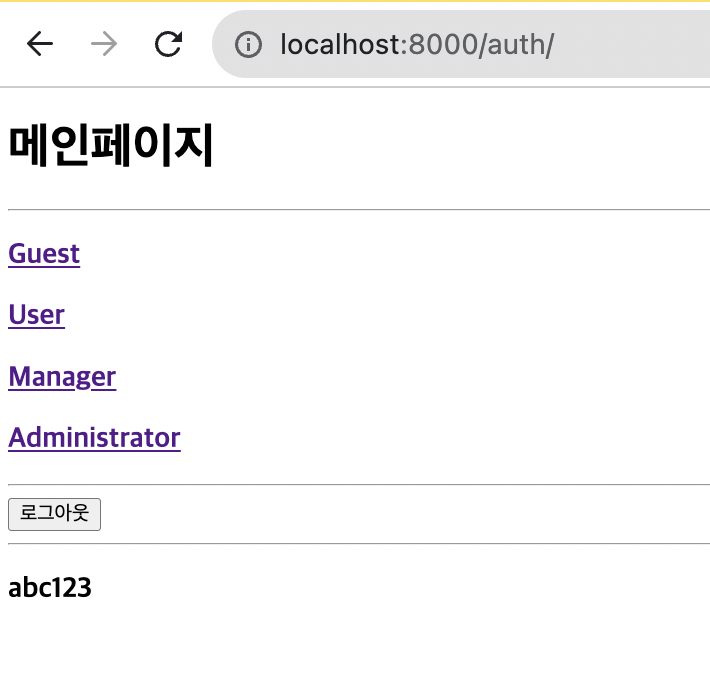 로그아웃할 때는 무조건 form 태그를 이용해서 post 방식으로 토큰을 전달해주어야 한다.