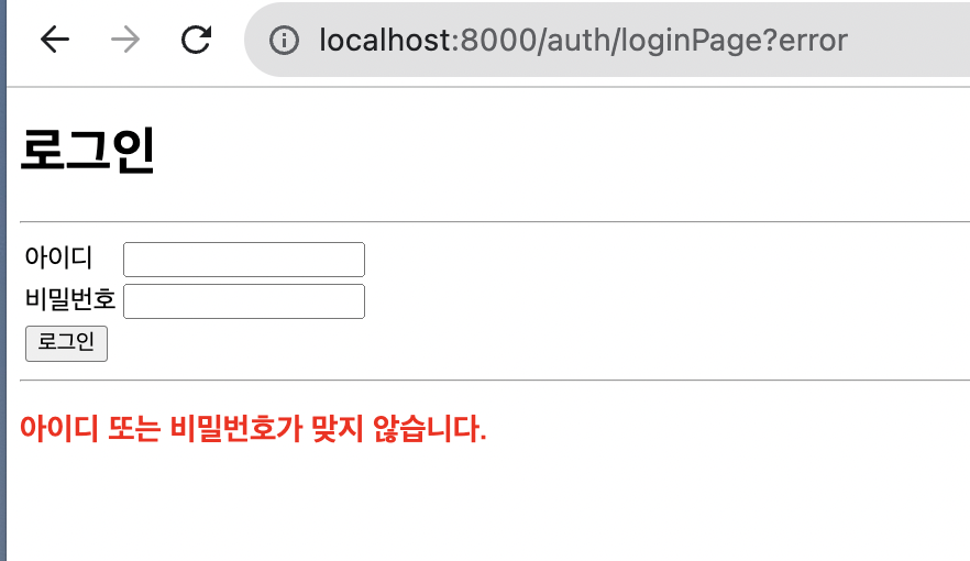 setDefaultFailureUrl("/loginPage");//로그인 실패시 로그인 페이지로