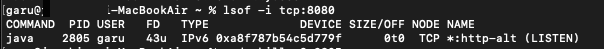 lsof 명령어를 이용해 현재 사용중인 포트를 확인할 수 있다.