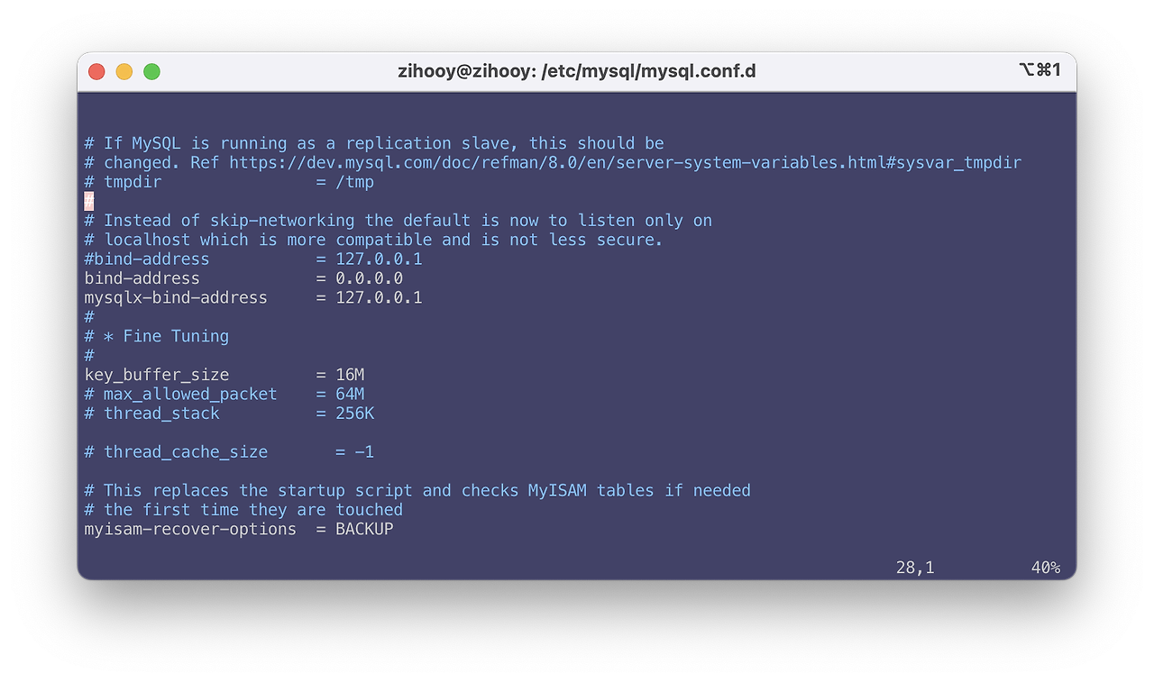 bind-address 부분을 0.0.0.0 로 바꿔준다.
