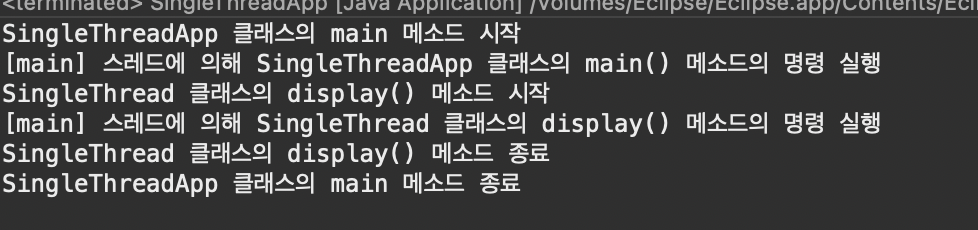 //JVM에 의해 main 스레드가 자동으로 생성되어 main() 메소드를 호출해 main() 메소드에 작성된 명령 실행