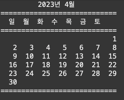 //[1일]을 출력하기 전까지의 요일을 공백으로 출력