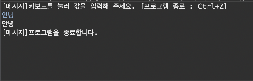 System.out.println("[메시지]키보드를 눌러 값을 입력해 주세요. [프로그램 종료 : Ctrl+Z]");