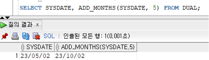 ADD_MONTHS(날짜값, 숫자값)