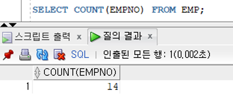 : 매개변수로 전달받은 컬럼값의 갯수를 반환하는 함수 - 검색행의 갯수 반환