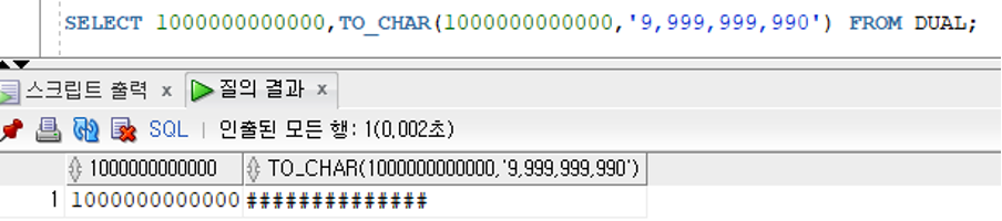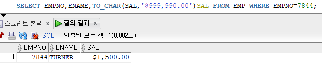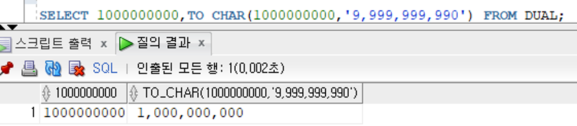 TO_CHAR({숫자값|날짜값},패턴문자)