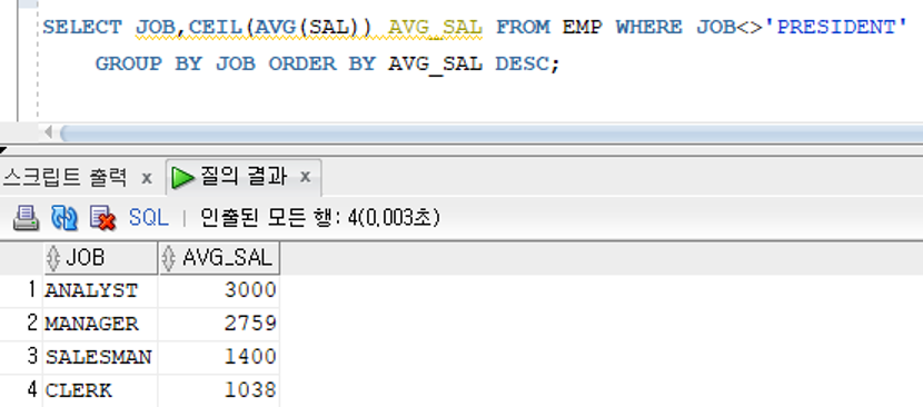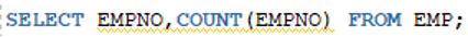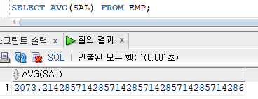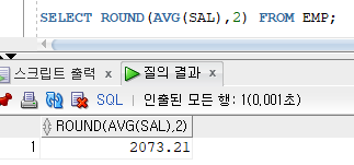 >> 그룹함수는 다른 검색대상과 같이 사용할 경우 그룹함수와 검색대상의 검색행의 갯수가 서로 다르므로 에러 발생