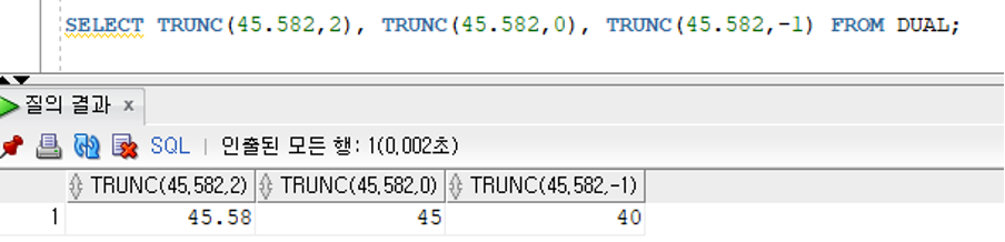 TRUNC (숫자값, 소숫점자릿수)