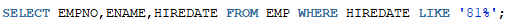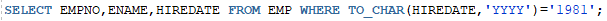 EMP 테이블에서 1981년에 입사한 사원의 사원번호,사원이름,입사일 검색