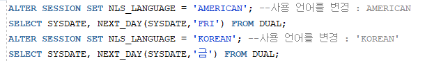 오라클에 접속된 현재 사용자 환경(세션 : SESSION)에 따라 사용 언어 및 날짜와 시간 패턴이 다르게 적용된다.